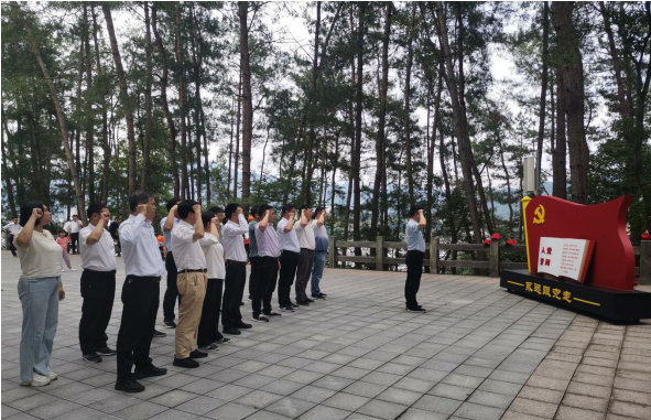 重溫入黨誓詞。紀念是傳承,緬懷是弘揚。6月25日,集團機關(guān)黨支部開展“重溫黨史守初心”主題黨日活動,全體黨員赴大別山烈士陵園,胸帶紅色黨徽,整齊列隊,滿懷敬意,面對鮮紅黨旗,高高舉起右手,重溫入黨誓詞,面向紀念碑三鞠躬并敬獻花籃以示追憶。